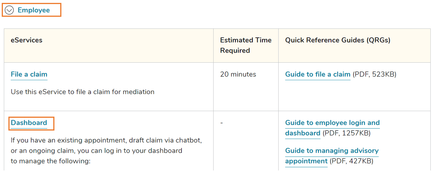 - Select "Employer/Company Representative" and click on "Dashboard".