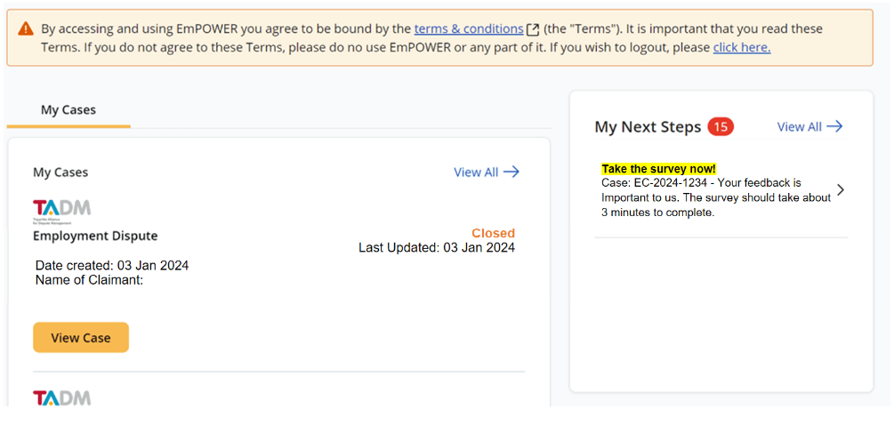 - After you have logged in, view "My Next Steps" on the right and select "Take the survey now!".