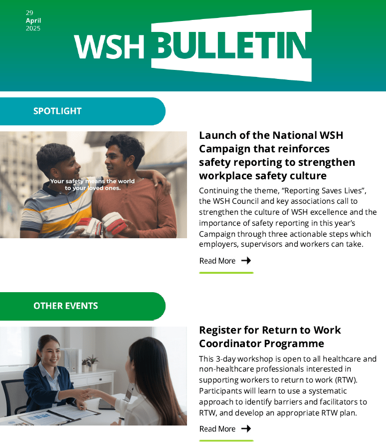 Launched on 28 April, this year’s Campaign continues with the theme “Reporting Saves Lives” to call on more companies and their workers to deepen a culture of WSH excellence through proactive safety reporting.