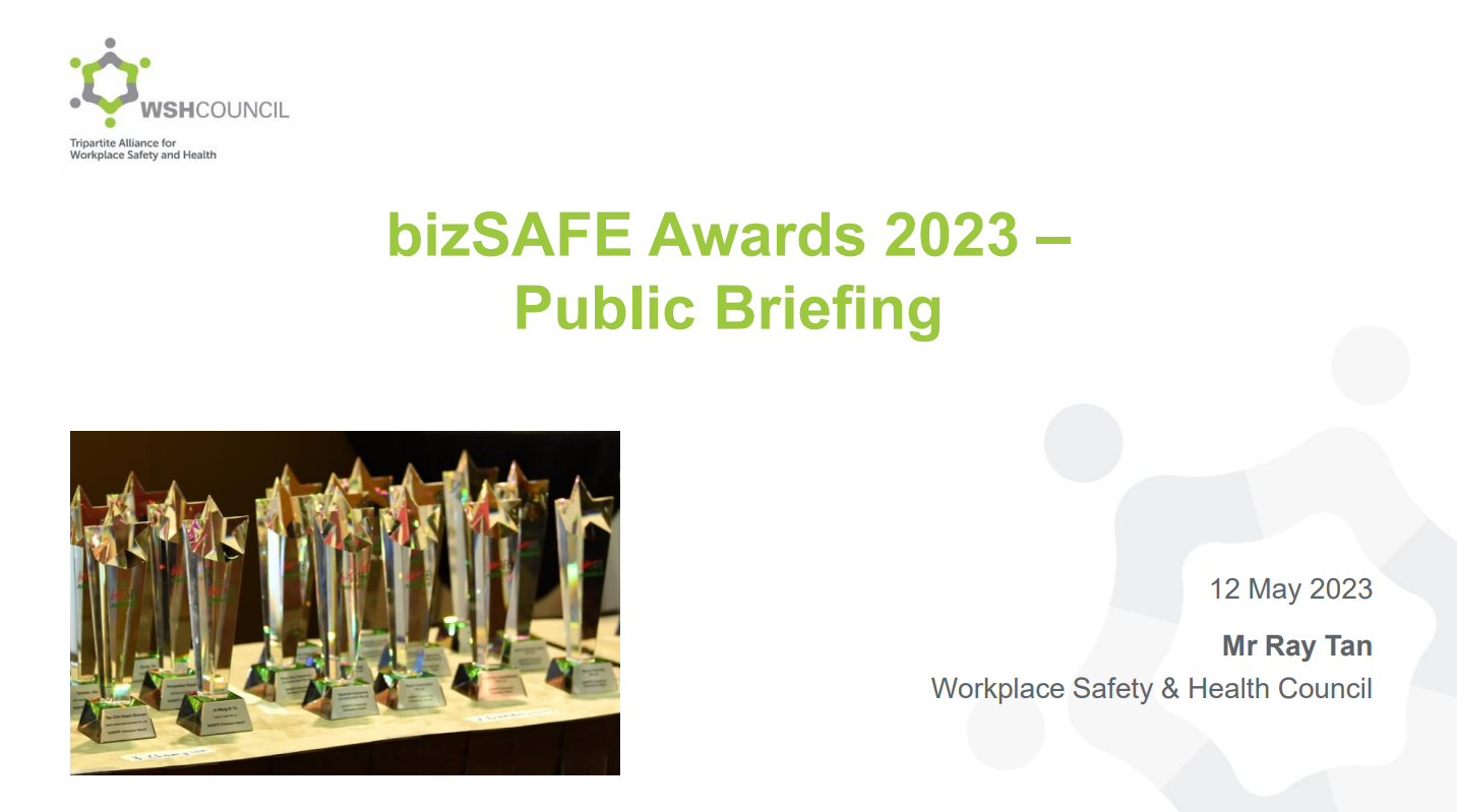 The annual bizSAFE Awards recognise bizSAFE enterprises who have demonstrated exemplary risk management and dedication towards raising WSH standards and practices within their business network. If your company has gone the extra mile to advocate good WSH practices amongst your subsidiaries and contracted companies, we invite you to participate in the bizSAFE Awards 2023: