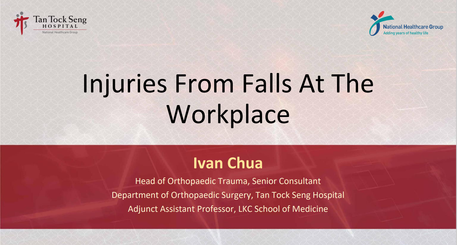 | 10.45am | Effects from a Fall – Major and Minor Injuries Dr Ivan Chua, Senior Consultant, Head of Orthopaedic Trauma Service, Tan Tock Seng Hospital |