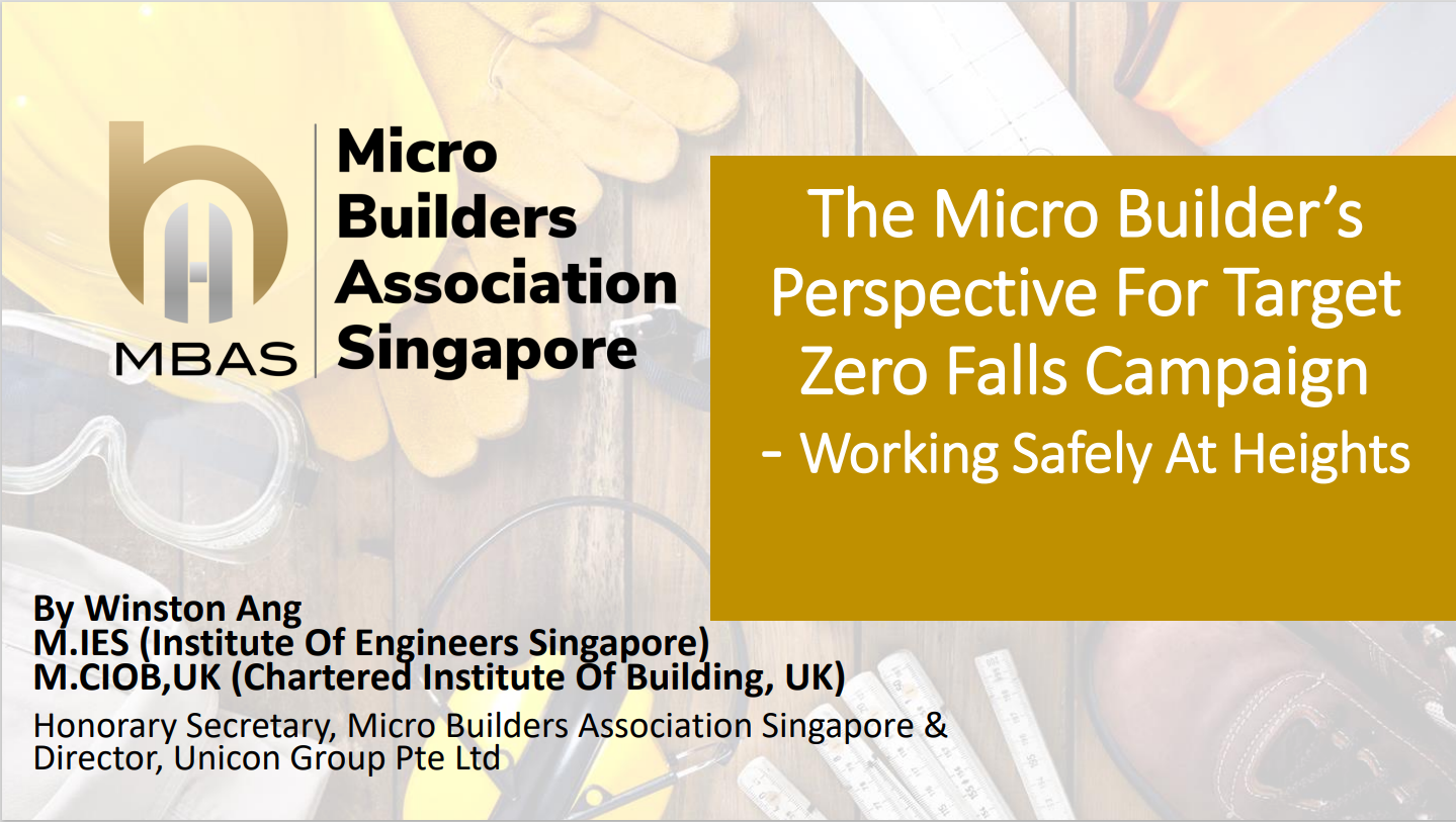 | 10.05am | Working Safely at Heights for SMEs Mr Winston Ang, Honorary Secretary, Micro Builders Association Singapore |