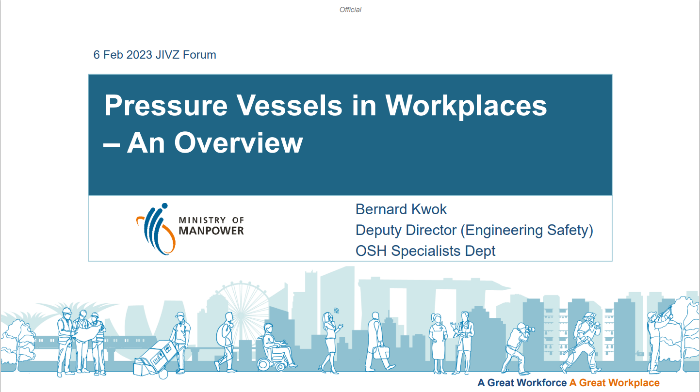 Themed “Vessels under Pressure can be Hazardous”, the eighth run of the Jurong Island Vision Zero (JIVZ) Forum highlighted best WSH practices when working with pressure vessels. Jointly organised by the Singapore Chemical Industry Council, the Association of Process Industry, and the Workplace Safety and Health (WSH) Council on 6 February 2023, the quarterly Forum was attended by close to 200 participants.