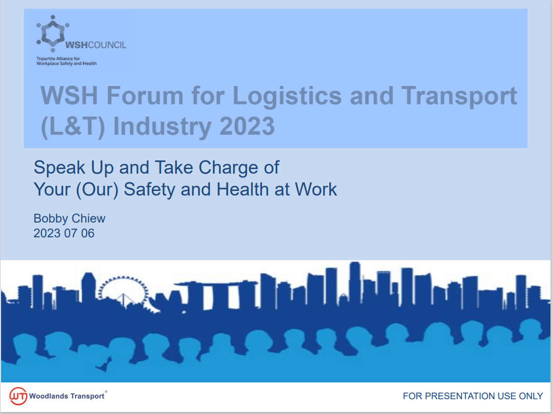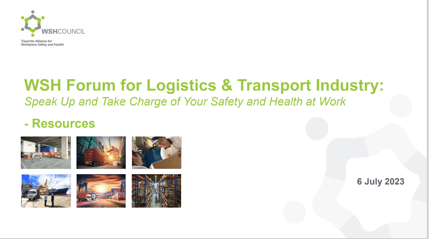 At the WSH Forum for the Logistics and Transport (L&T) Industry, co-organised by the Singapore Logistics Association and Workplace Safety and Health (WSH) Council on 6 July 2023, participants were urged to take charge of WSH and foster industry ownership.