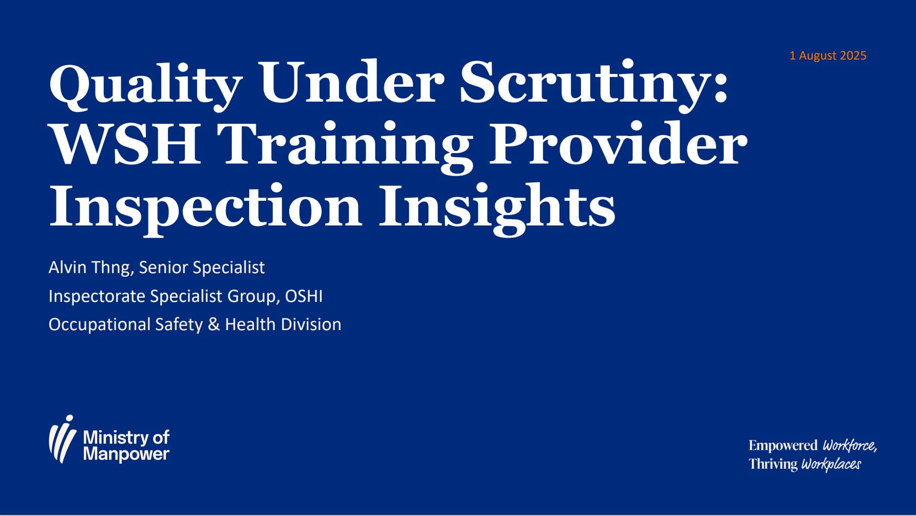On 1 August 2025, the Training Providers’ Forum saw more than 120 attendees from the different training providers (TPs) coming together to align efforts and to strengthen the WSH training standards in Singapore.