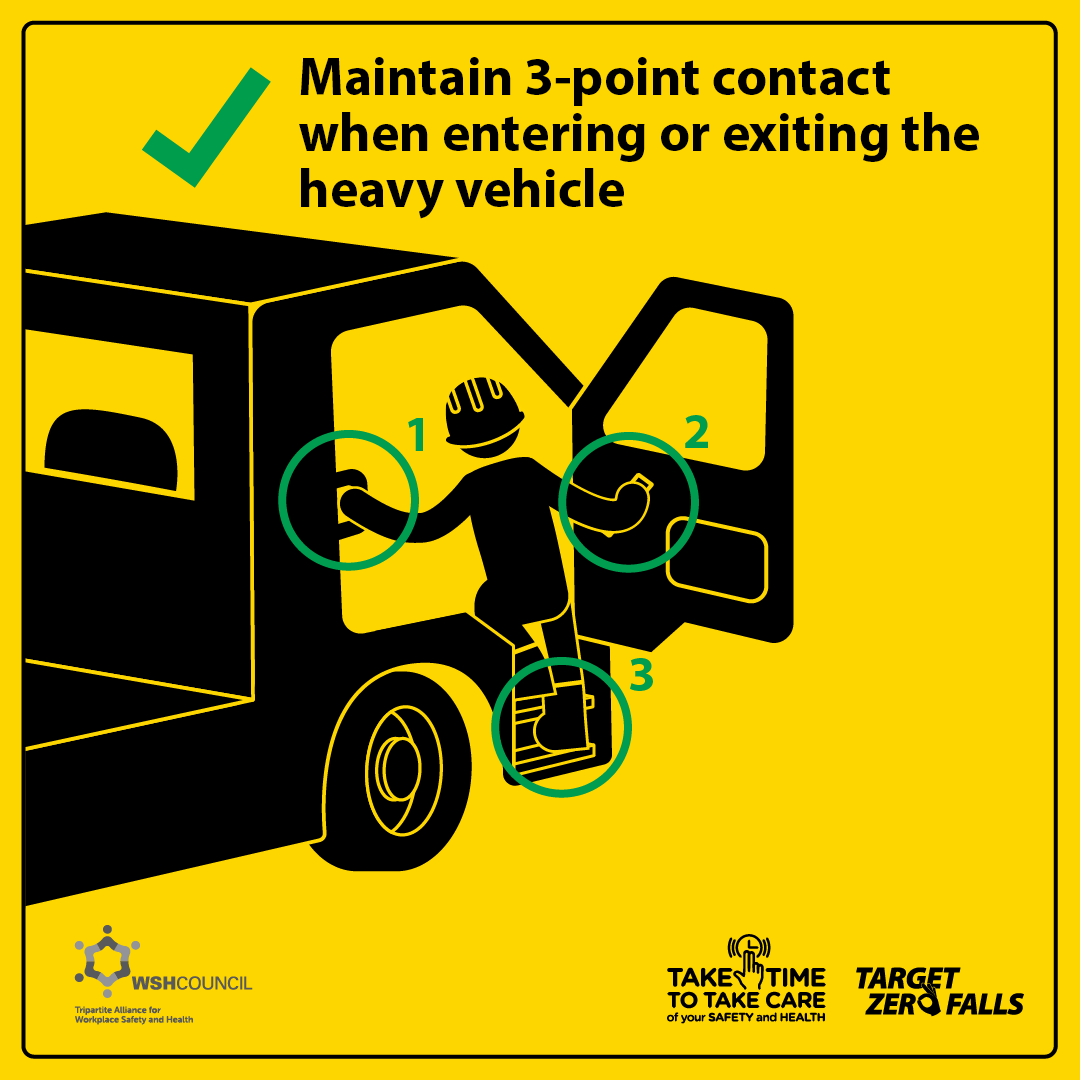 Maintain 3-point contact when entering or exiting the heavy vehicle