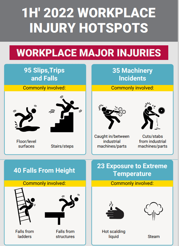 1H 2022 Workplace Injury Hotspots WSH Infographics poster