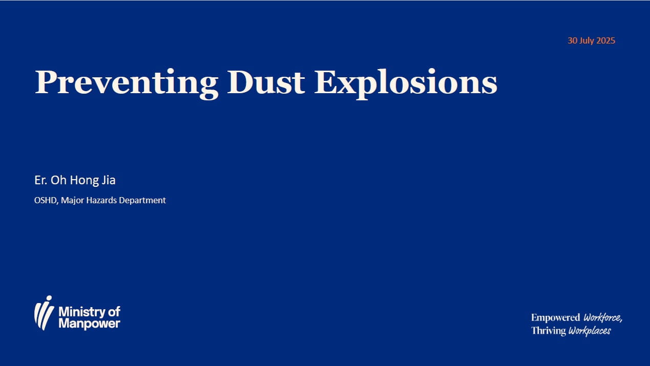 Presentation by Er. Oh Hong Jia, OSHD, Major Hazards Department at WSH Forum on Strengthening Combustible Dust Safety in Workplaces