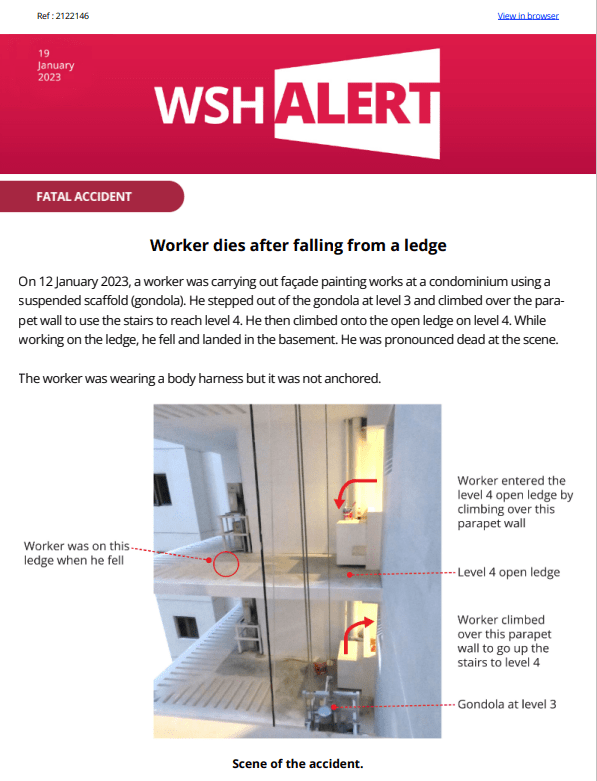WSH Alert 19 Jan 2023 Fatal Accident Worker dies after falling from a ledge