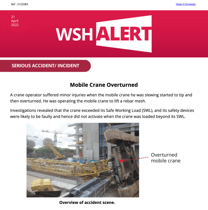 WSH Alert 21 Apr 2022 Serious Accident Incident Mobile Crane Overturned