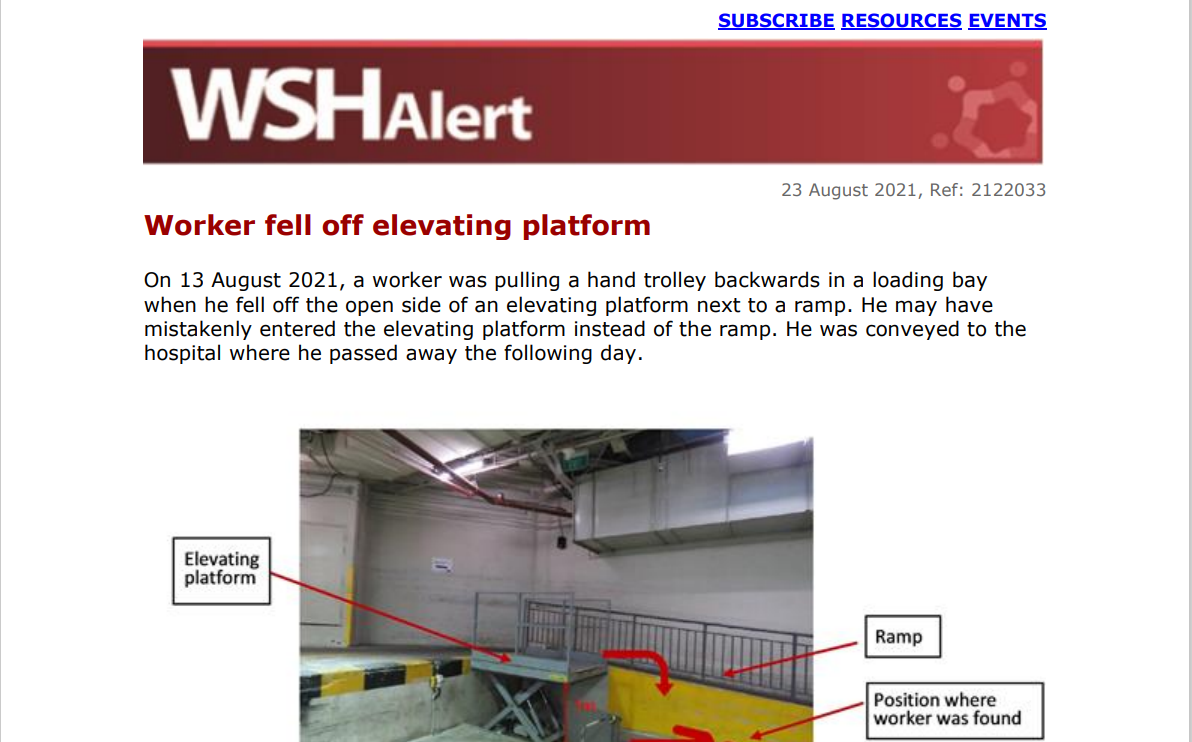 WSH Alert 23 August 2021 Worker fell off elevating platform