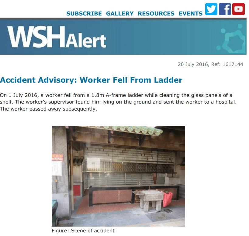 WSH Alert Accident Advisory 20 July 2016 Worker Fell From Ladder