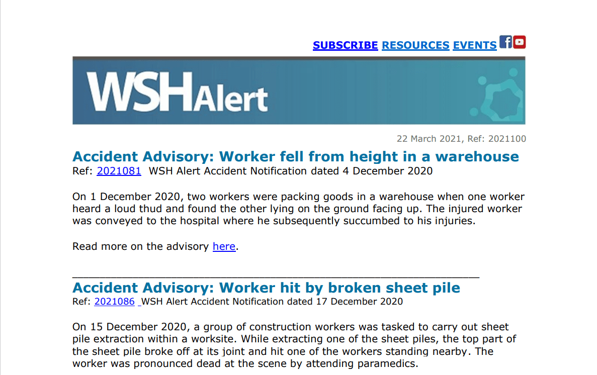 WSH Alert Accident Advisory 22 March 2021 Worker fell from height in a warehouse