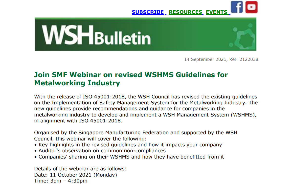 WSH Bulletin 14 Sep 2021 1 Join Webinar on WSHMS Guidelines 2 Supporting Employee Mental Well-being