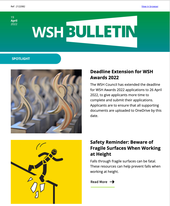 WSH bulletin 19 Apr 2022 1 Beware of fragile surfaces 2 Beat the Heat 3 WSH Forum for F B industry