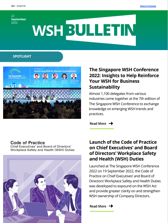 WSH Bulletin 22 Sep 2022 1 Singapore WSH Conference 2 COP on CE and Board of Directors WSH Duties