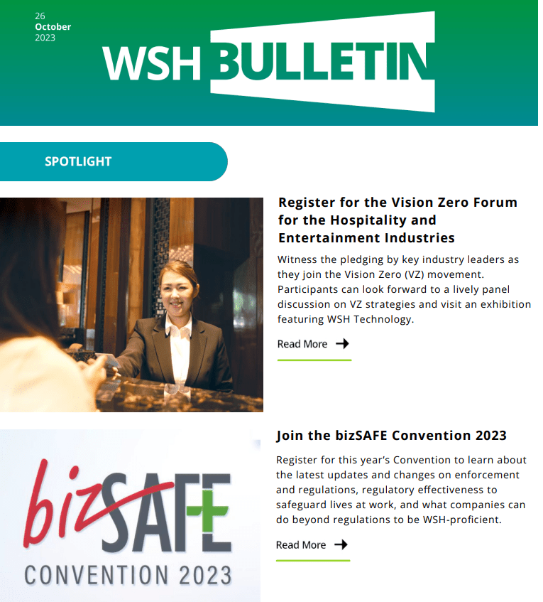WSH Bulletin 26 Oct 2023 Register for the Vision Zero Forum for the Hospitality and Entertainment