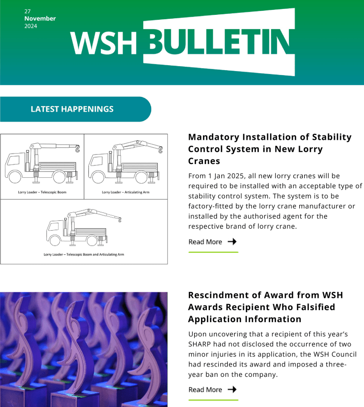 28 Nov 2024 Newsletters WSH Bulletins English Lifting , Vehicular Safety Construction and Landscape , Transportation and Storage