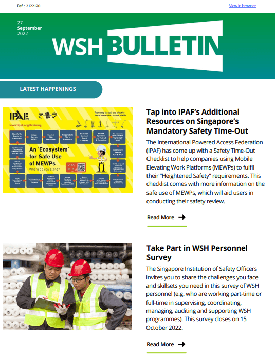 WSH Bulletin 27 Sep 2022 1 IPAF Resources 2 WSH Personnel Survey