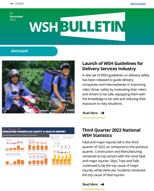 WSH Bulletin 30 Nov 2022 WSH Guidelines for Delivery Services Industry 3Q National WSH Statistics
