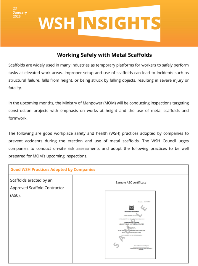 WSH Insights 23 January 2025 Working Safely with Metal Scaffolds