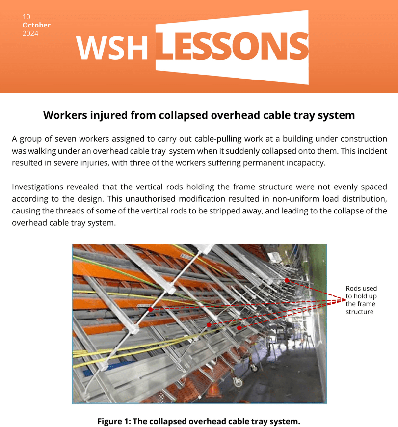 WSH Lessons 10 October 2024 Workers Injured from Collapsed Overhead Cable Tray System