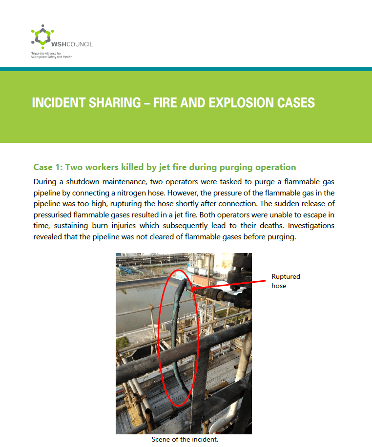 This set of incident sharing articles focuses on past incidents, lessons learnt and good practices within the chemical industries. The case studies also serve as reminders to workers on the importance of following safe work procedures when operating in a similar environment or process, or when handling similar equipment.