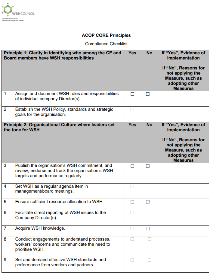 Principle 1: Clarity in identifying who among the CE and Board members have WSH responsibilities