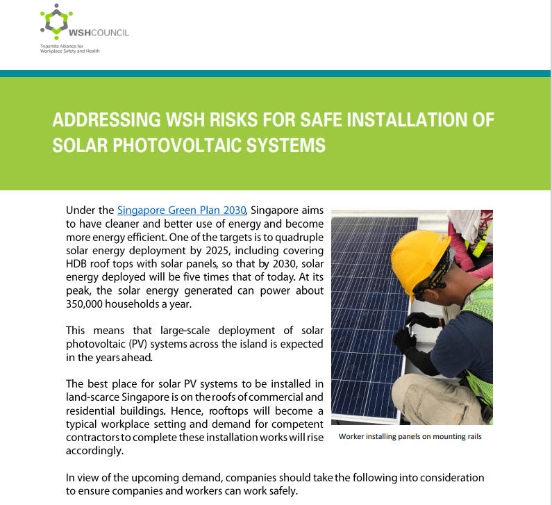 Addressing WSH risks for safe installation of solar photovoltaic systems