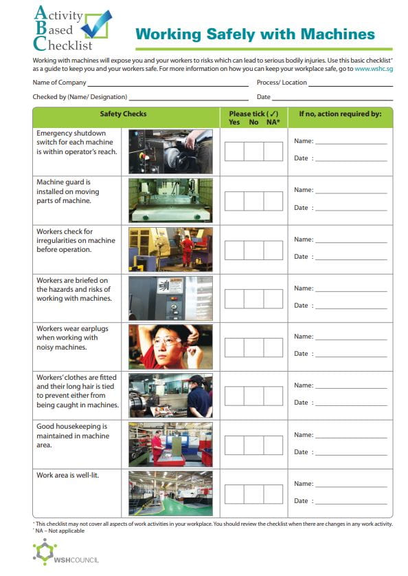 Working Safely with machines Checklist