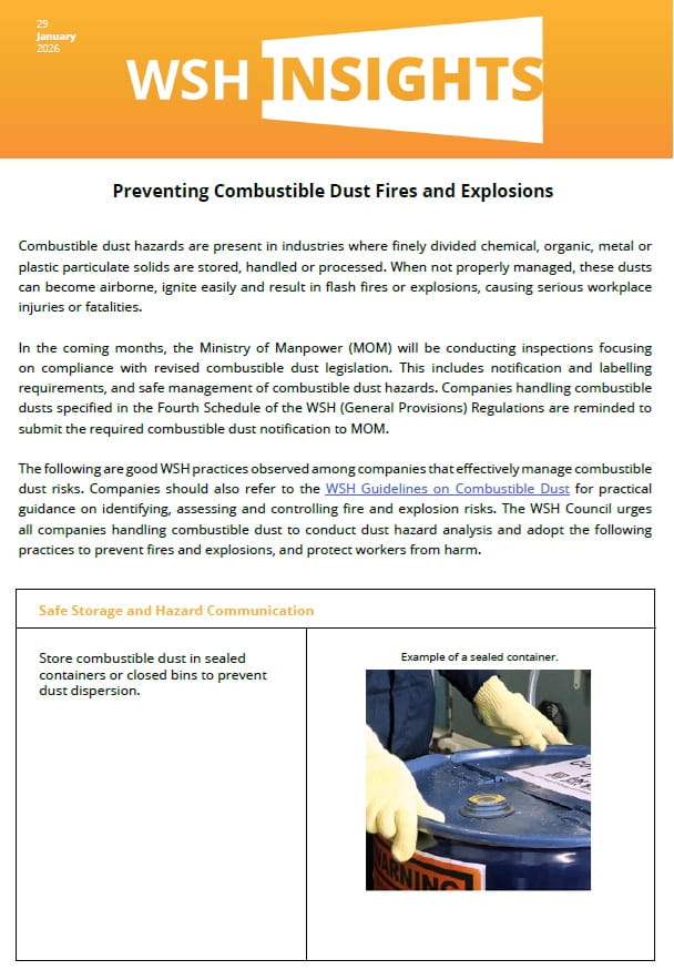 - Conduct regular hygiene monitoring if your workplace uses or generates toxic substances. Refer to the First Schedule of the WSH (General Provisions) Regulations for a list of the permissible exposure levels for toxic substances.